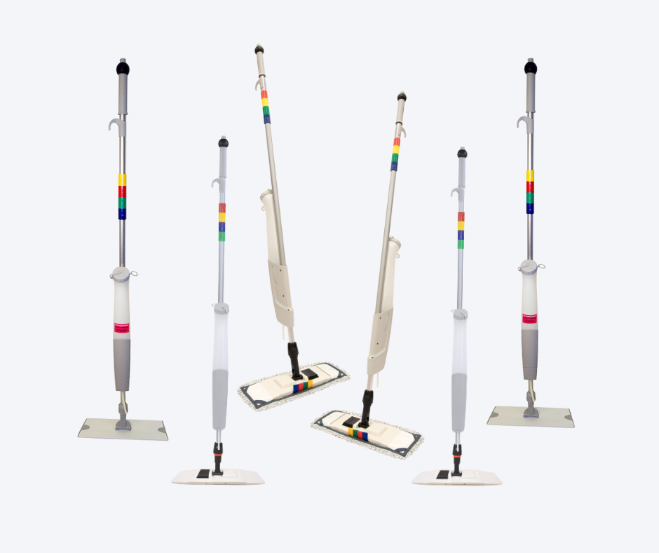Our Advantage Plus mop system offers efficient and versatile cleaning. No more lugging around heavy buckets and dirty mop water. With our Bucketless Mopping System, cleaning has never been easier or more effective!
